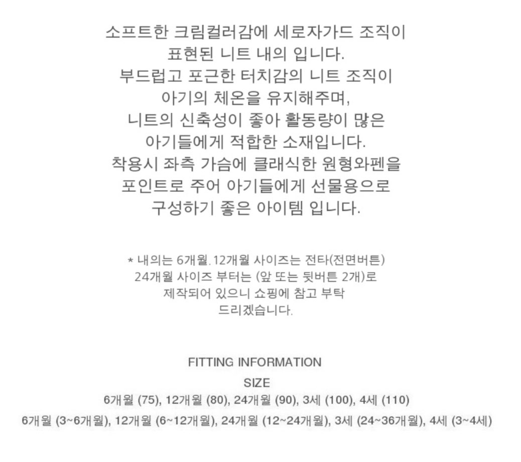 ※내의류 12개월사이즈는 전타(전면 버튼),